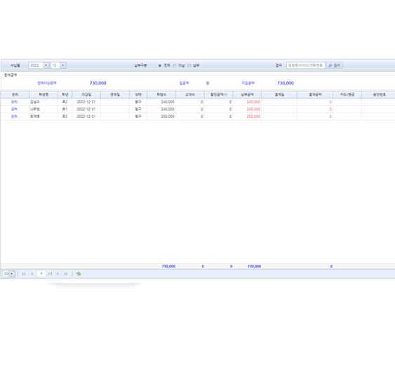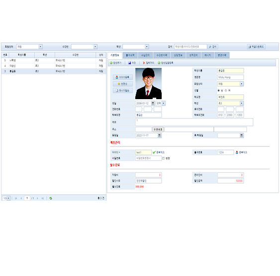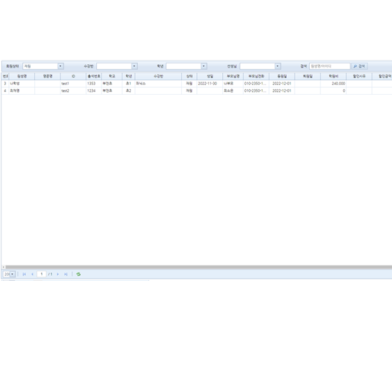 - 한 화면에서 원생의 모든 업무 처리가능