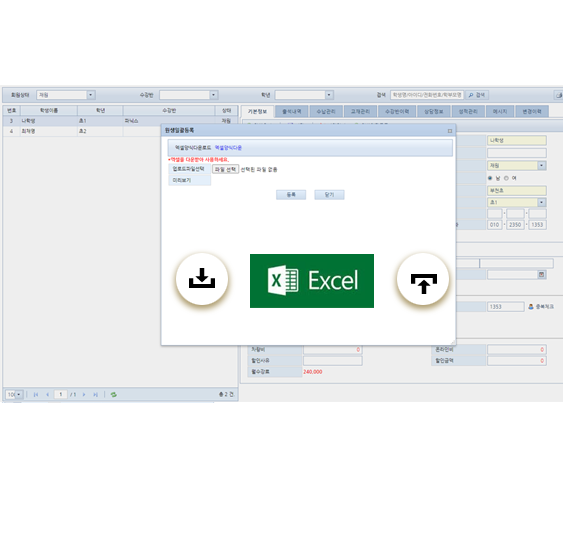- 학생 일괄등록기능(엑셀업로드)