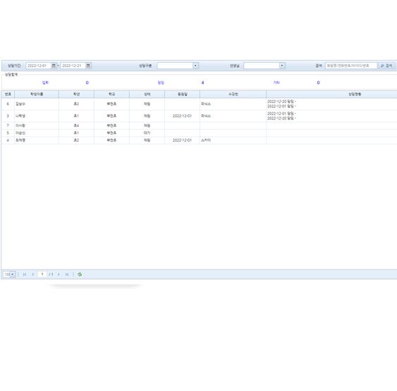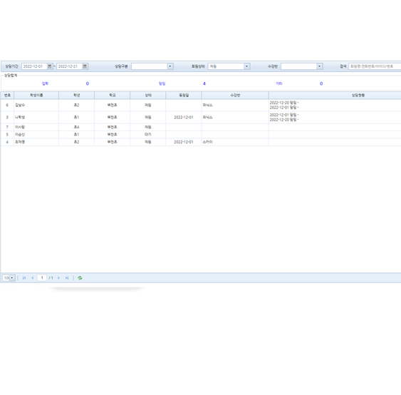 학원 상담 스케줄과 현황을