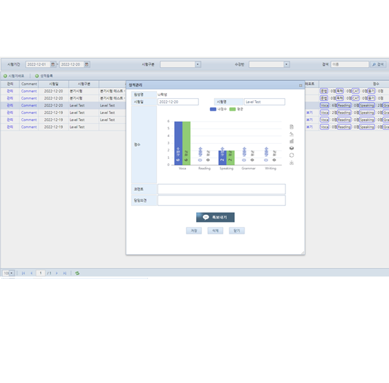 원생의 과제 및 시험성적을