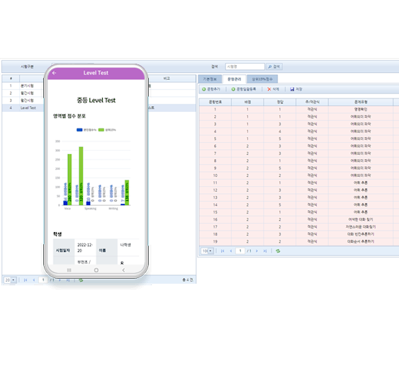 - 시험별로 최대 5개 과목 성적입력