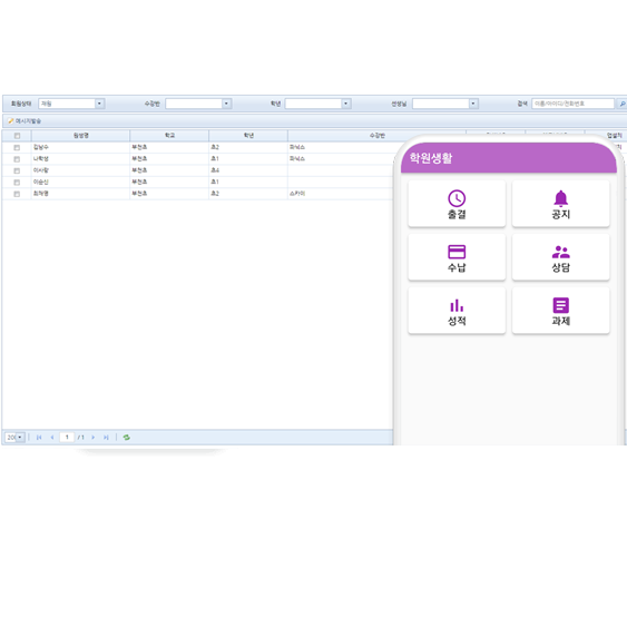 웹에서도, 모바일에서도 학원관리 스마트하게~